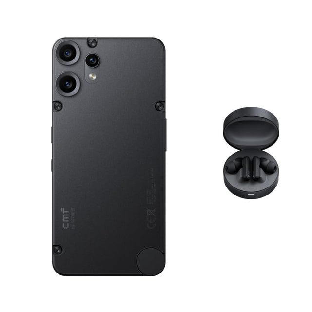 هاتف CMF 2 Pro 8GB 256GB أسود، معالج MediaTek Dimensity 7300 Pro 5G، شريحتي اتصال، شاشة AMOLED مرنة LTPS، حجم الشاشة 6.77 بوصة، دقة 1080 × 2392، ثلاث كاميرات، الكاميرا الخلفية 50+50+8 ميجابكسل، الكاميرا الأمامية 16 ميجابكسل، أسود + سماعات Buds Pro