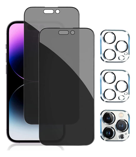 واقي شاشة AWH 2+2 مع واقي عدسة الكاميرا، غشاء زجاجي مقوى مضاد للتجسس، صلابة 9H، حماية الحافة، تركيب سهل، خالٍ من الفقاعات، تصميم خاص (iPhone 14 Pro Max)