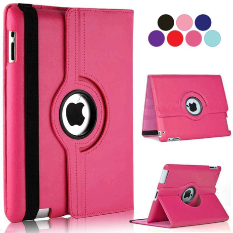 جراب AWH الذكي المصنوع من الجلد القابل للطي مع حامل دوار 360 درجة [خاصية السكون/التنشيط التلقائي] لجهاز Apple iPad (iPad 9.7" 2017/2018، وردي فاقع)