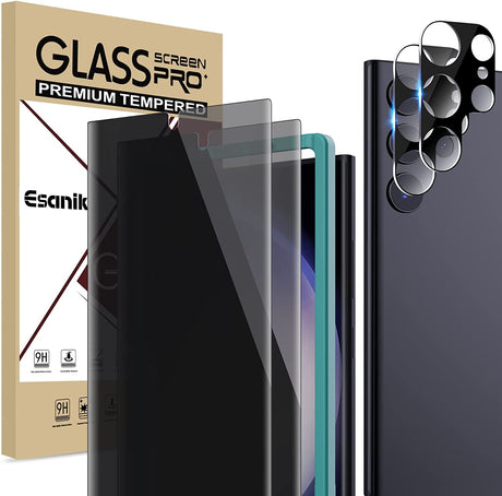 واقي شاشة AWH 2+2 عبوة من واقي شاشة الخصوصية لهاتف Samsung Galaxy S23 Ultra مقاس 6.8 بوصة مضاد للتجسس مصنوع من مادة PET مع إطار سهل التركيب + واقي عدسة الكاميرا متوافق مع معرف بصمة الإصبع (S23 Ultra)