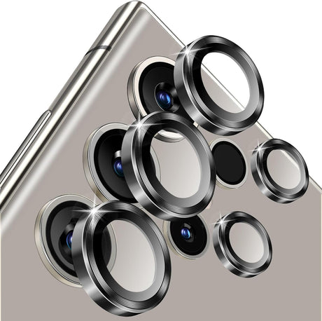 واقي عدسة كاميرا AWH S24 Ultra، قطعتان - غطاء معدني بحلقة فردية، زجاج مقسّى مقاوم للخدش مع حواف من الألومنيوم، مناسب للحافظات، ملحقات S24 Ultra - رمادي