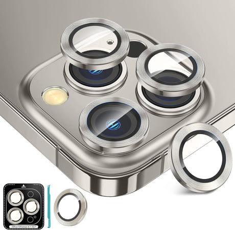 واقي عدسة كاميرا AWH 3+1 لهاتف iPhone 15 Pro/Pro Max - زجاج مقوى 9H، فائق الدقة، غطاء واقي شاشة كاميرا فردي معدني لهاتف iPhone 15 Pro/Pro Max (تيتانيوم طبيعي)