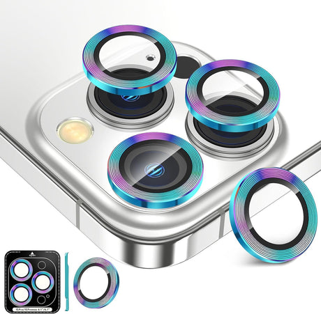 واقي عدسة كاميرا AWH 3+1 لهاتف iPhone 15 Pro/Pro Max - زجاج مقوى 9H، فائق الدقة، غطاء واقي شاشة كاميرا فردي معدني لهاتف iPhone 15 Pro/Pro Max (بريق ملون)