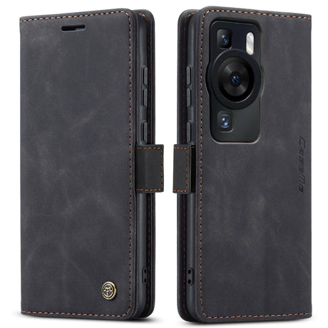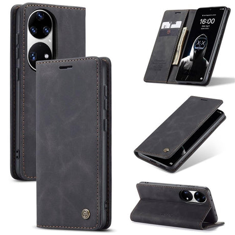 UniqCase لهاتف Huawei P50 حافظة جلدية PU قابلة للطي مع حامل مغناطيسي وغطاء قلاب يمتص تلقائيًا - أسود