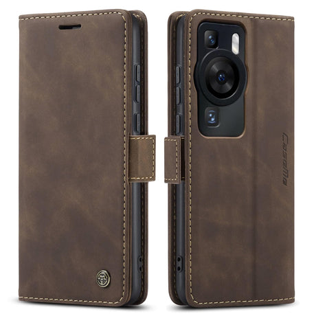 UniqCase لهاتف Huawei P40 جراب هاتف مغناطيسي من جلد البولي يوريثان + حامل محفظة من مادة TPU - بني