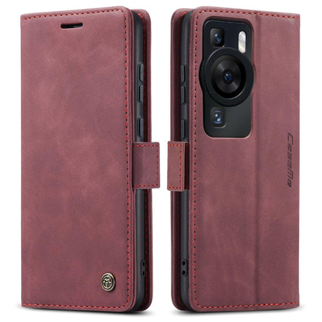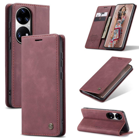 UniqCase لهاتف Huawei P50 حافظة جلدية PU قابلة للطي مع حامل مغناطيسي وغطاء قلاب يمتص تلقائيًا - أحمر