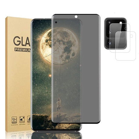 【عبوة من 1 + 2】واقي شاشة الخصوصية لهاتف Galaxy S20 Ultra + واقي عدسة الكاميرا سهل التركيب / منحني ثلاثي الأبعاد / صلابة 9H / واقي شاشة من الزجاج المقوى المضاد للتجسس، لهاتف Samsung Galaxy S20 Ultra 5G (6.9 بوصة)