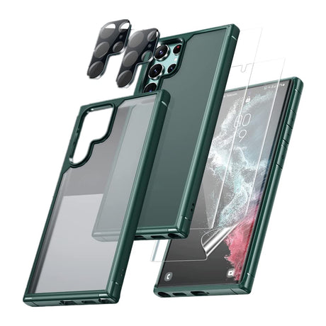 [5 في 1] جراب لهاتف Samsung S23 Ultra، قطعتان من واقي عدسة الكاميرا + قطعتان من واقي الشاشة الناعم، لمسة نهائية غير لامعة، حماية شاملة، مقاوم للصدمات، طقم مضاد للخدوش لهاتف S23 Ultra 5G (S23 Ultra، أخضر)
