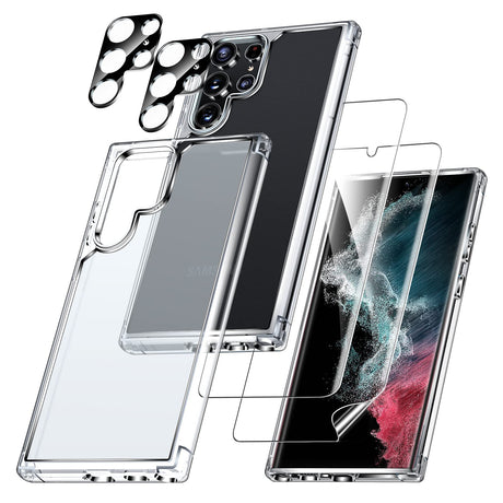 [5 في 1] جراب لهاتف Samsung S23 Ultra، قطعتان من واقي عدسة الكاميرا + قطعتان من واقي الشاشة الناعم، لمسة نهائية غير لامعة، حماية شاملة، مقاوم للصدمات، طقم مضاد للخدوش لهاتف S23 Ultra 5G (S23 Ultra، شفاف)