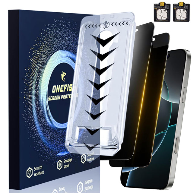 【Compatibility】 The screen protector is only for iPhone 16 Pro 6.3-Inch.Please check your phone model before purchasing the product. 【Privacy Protection】 The screen protection glass display is only visible to those directly in front of you. It effectively protects your privacy and ensures a comfortable viewing experience. 【Automatic dust removal technology】Simply cover and pull, the screen protector will automatically align and remove dust. No more hesitation due to air bubbles and dust. Please watch our dust removal installation video tutorial before installation. 【Anti-fingerprint】Highly toughened 9H tempered glass. Highly protects the screen from unwanted scratches and abrasions.Tempered glass screen protector for iPhone 16 Pro 6.3-Inch is coated to avoid fingerprints oil residue, suitable for long term use. 【Product list】 2 compatible screen protectors for iPhone 16 Pro 6.3-Inch , 2 camera lens protectors, 2 auto calibration kits (screen protectors come pre-installed in the auto calibration kits) and 2 installation kits.