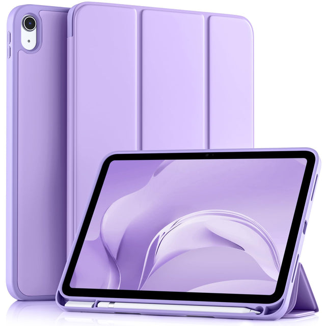 Akkerds Compatible with iPad 10th Generation Case 10.9 Inch 2022 with Pencil Holder, Slim Trifold Stand Protective Cover with Soft TPU Back for iPad Case 10th Generation, Auto Sleep/Wake, Lavender