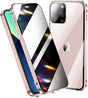 AWH Anti-spy Screen iPhone 14 Pro Max case - Metal Frame Lock & Magnetic adsorption Anti-Peeping 360 Full Body Double-Sided Glass case Camera Lens Protector (Pink)