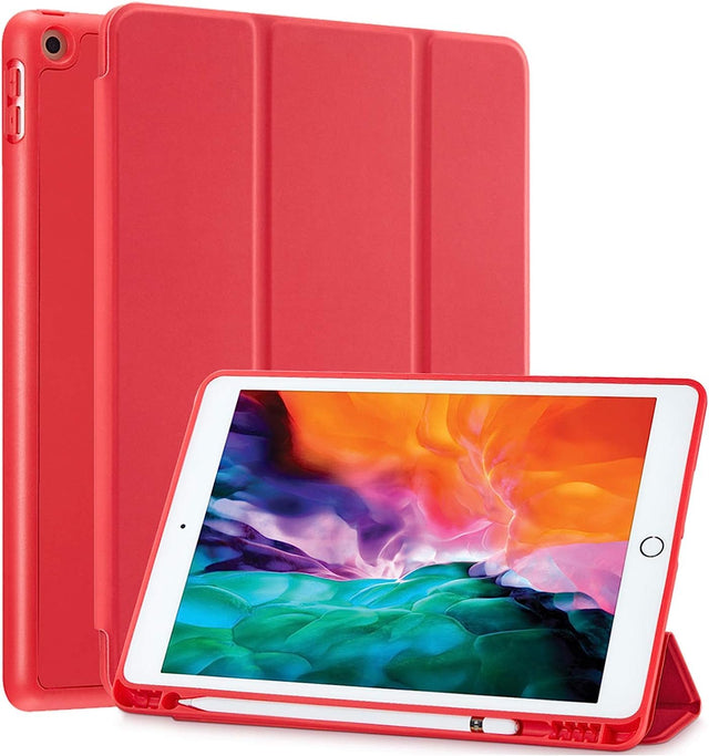AWH Compatible for iPad 10.2 - inch 9th/8th/7th Generation Case(2021/2020/2019) with Pencil Holder, Slim Soft TPU Smart Trifold Stand Protective Full Body Cover, Auto Sleep/Wake - Red