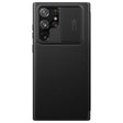 AWH Qin Pro Plain Leather + Cloth Case for Samsung Galaxy S22 Ultra - with Slide Camera Cover Protection for Galaxy S22 Ultra 5G Case 6.8" 2022, (Black)