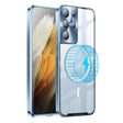 Tffozssi Case for Samsung Galaxy S21 Ultra, Compatible with Magsafe Magnetic Adsorption Metal Bumper Back Frosted PC Cover, Blue