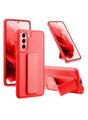 Topr for Samsung Galaxy S21 FE with Magnetic Stand & Holder, Premium Silicone Vertical & Horizontal Hand Strap Grip Multi Stand, Car Mount Kickstand Case Finger Strap Cover (Red)