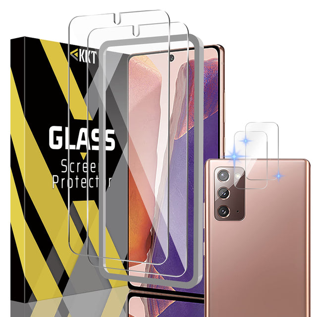 [2 + 2] واقي شاشة من الزجاج المقوى لهاتف Samsung Galaxy Note 20 5G مقاس 6.3 بوصة، متوافق مع بصمات الأصابع، صلابة 9H، مضاد للتوهج، خالٍ من الفقاعات، إطار محاذاة سهل التركيب