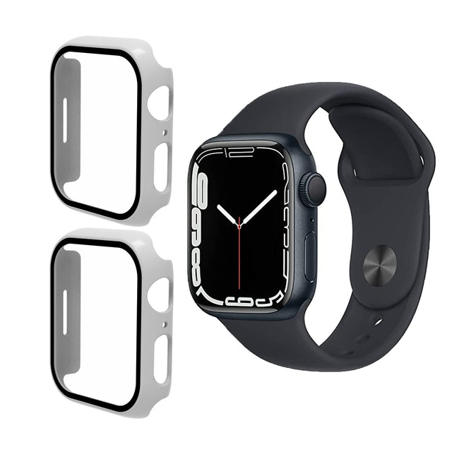 [عبوة من قطعتين] واقي شاشة YXTBB من الزجاج المقوى لساعة Apple Watch Series 7 مقاس 45 مم، جراب صلب من البولي كربونات مع غطاء واقٍ كامل اللمس حساس لملحقات Apple Watch Series 7، أبيض