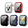 مجموعة من 5 حافظات مع واقي شاشة من الزجاج المقوى لساعة Apple Watch مقاس 40 مم Series 6/SE/Series 5/Series 4، غطاء حماية كامل من JZK مصنوع من مادة PC الصلبة عالية الدقة بنمط دوار الشمس الفهد لملحقات iwatch مقاس 40 مم