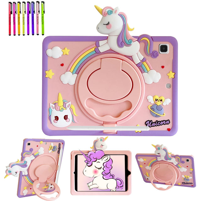 جراب A-BEAUTY متوافق مع جهاز Samsung Galaxy Tab A7 Lite مقاس 8.7 بوصة (SM-T220 /T225 /T227)، جراب للأطفال مع حامل قلم، حامل بمقبض دوار 360 درجة