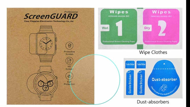 فيلم زجاجي مقوى عالمي للساعة الذكية، واقي شاشة سهل التركيب، فقط انزع الملصق الموجود على الفيلم، ضعه بشكل صحيح وسيمتص الفيلم تلقائيًا صلابة 9H، ومضاد للصدمات، ومضاد للخدش، ومضاد لبصمات الأصابع، ويحمي ساعتك من التلف الناتج عن الأشياء الخشنة والحادة، وهو واقي ممتاز عند سقوط ساعتك الذكية سطح مقاوم للماء ومضاد للزيت، لذلك لا يسهل بقاء بقع العرق والزيت على وجه الساعة. تتضمن العبوة أدوات مساعدة، وورقتي ملابس الشاشة الاحترافيتين (رطبة + جافة)، تساعد على إزالة الغبار والحفاظ على نظافة ساعتك. شفاف تمامًا ونحيف، يسمح عالي الدقة لساعتك بأداء تأثير عرض ممتاز (نفاذية 99.9٪ أو أكثر). حساسية عالية، ظهر لاصق قوي، رابطة تمامًا، خالية من الفقاعات، لا تؤثر على حساسية شاشة اللمس.