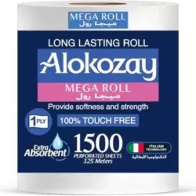 مناديل ألوكوزاي ميجا رول الورقية هي لفافة ورقية متينة، خالية من اللمس بنسبة 100%، توفر نعومة ومتانة فائقة. هذه المناشف مثالية لمسح اليدين وتجفيف الأسطح، كما أنها مادة ماصة لتنظيف السوائل المنسكبة، حيث تمتص الماء والزيت بكفاءة عالية، وتزيل الدهون أيضًا.
