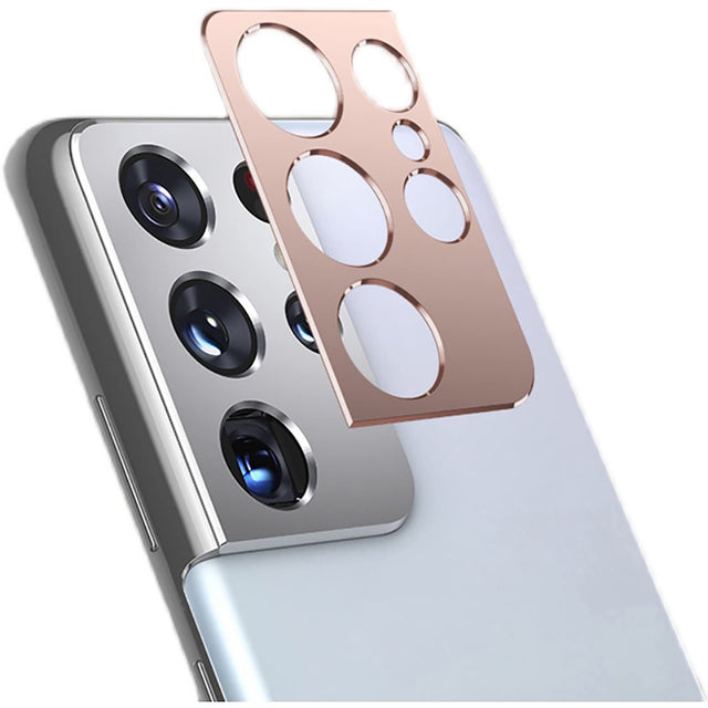 ملصق حماية لعدسة الكاميرا من سبائك الألومنيوم لهاتف Galaxy S21 Ultra 5G، واقي شاشة معدني مع شريط لاصق، عبوة من قطعتين (ذهبي وردي)
