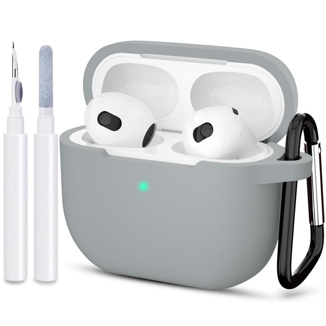 جراب ATUAT متوافق مع AirPods 3، غطاء سيليكون واقي لجراب AirPods من الجيل الثالث 2021، شحن لاسلكي - رمادي