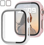 جراب AWH مكون من قطعتين مع واقي شاشة من الزجاج المقوى لساعة Apple Watch Series 7 مقاس 41/45 مم، ممتص صدمات نحيف، غطاء واقٍ صلب من البولي كربونات، غطاء فائق النحافة لساعة iWatch مقاس 41/45 مم، (45 مم، وردي + أبيض)