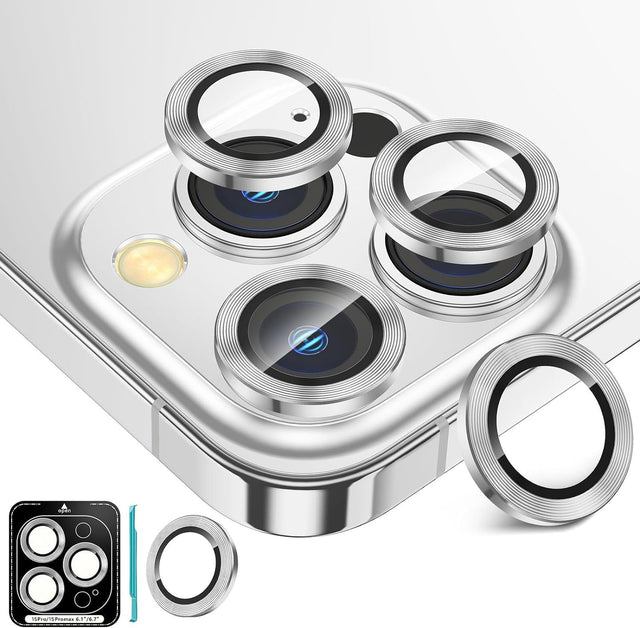 واقي عدسة كاميرا AWH 3+1 لهاتف iPhone 15 Pro/Pro Max - زجاج مقوى 9H، فائق الوضوح، غطاء واقي شاشة كاميرا فردي معدني لهاتف iPhone 15 Pro/Pro Max (فضي)