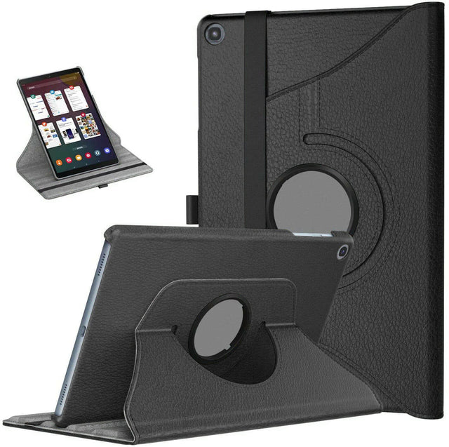 جراب AWH دوار 360 درجة لجهاز Samsung Galaxy Tab A7 10.4 (2020) T500 T505 غطاء حامل جلدي (أسود)