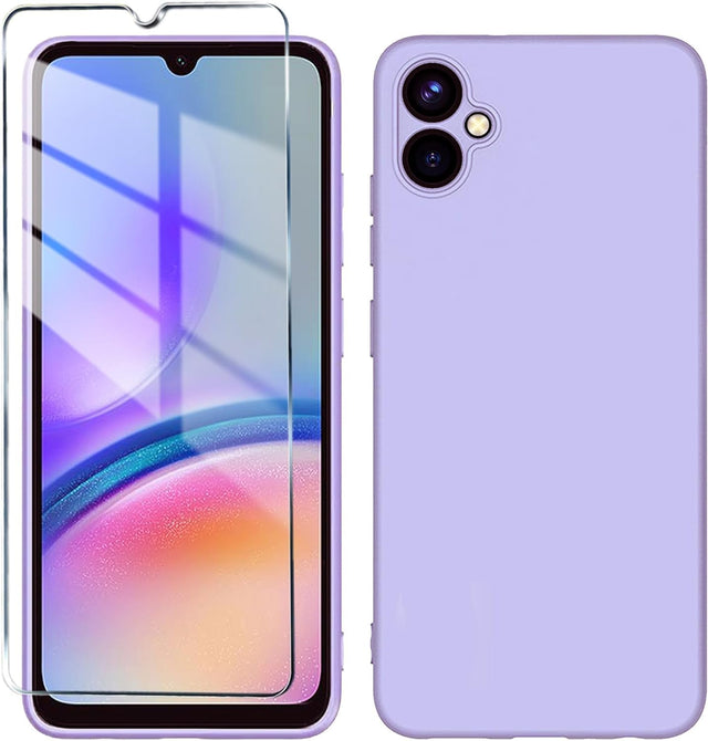 جراب AWH A05 مع واقي شاشة من الزجاج المقوى - جراب حماية كامل من السيليكون السائل الناعم الرفيع، مبطن بألياف ناعمة لهاتف Galaxy A05 (أرجواني)