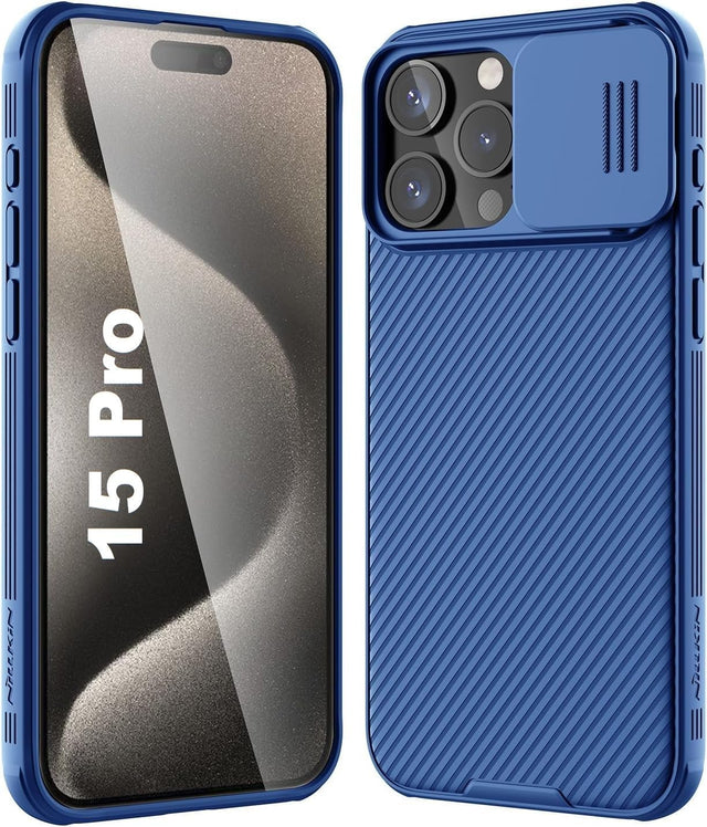 جراب AWH لهاتف iPhone 15 Pro Camshield مع حماية منزلق لعدسة الكاميرا - غطاء خلفي من البولي كربونات وإطار ممتص للصدمات من مادة TPU مضاد لبصمات الأصابع، جراب ناعم الملمس وحساس (أزرق) تم طلبه مرة أخرى وسيتم شحنه بمجرد توافره مرة أخرى في المخزون.