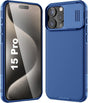 جراب AWH لهاتف iPhone 15 Pro Camshield مع حماية منزلق لعدسة الكاميرا - غطاء خلفي من البولي كربونات وإطار ممتص للصدمات من مادة TPU مضاد لبصمات الأصابع، جراب ناعم الملمس وحساس (أزرق)