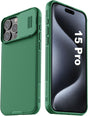 جراب AWH لهاتف iPhone 15 Pro Camshield مع حماية منزلقة لعدسة الكاميرا - غطاء خلفي من البولي كربونات وإطار ممتص للصدمات من مادة TPU مضاد لبصمات الأصابع، جراب ناعم الملمس وحساس (أخضر)