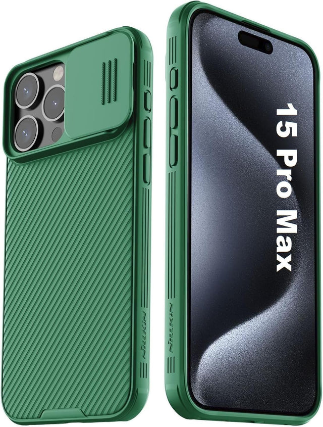 جراب AWH لهاتف iPhone 15 Pro Max Camshield مع حماية عدسة الكاميرا المنزلقة - غطاء خلفي من البولي كربونات وإطار ممتص للصدمات من مادة TPU مضاد لبصمات الأصابع، جراب ناعم الملمس (أخضر) تم طلبه مرة أخرى وسيتم شحنه بمجرد توافره مرة أخرى في المخزون.