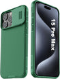 جراب AWH لهاتف iPhone 15 Pro Max Camshield مع حماية عدسة الكاميرا المنزلقة - غطاء خلفي من البولي كربونات وإطار ممتص للصدمات من مادة TPU مضاد لبصمات الأصابع، جراب ناعم الملمس (أخضر)