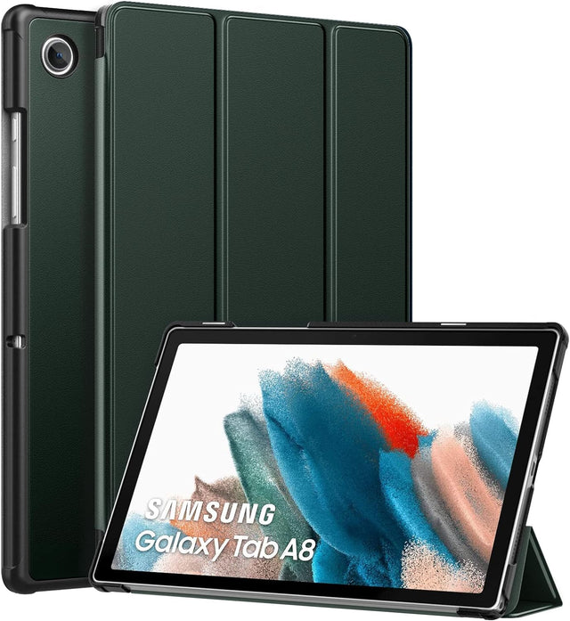 جراب AWH لجهاز سامسونج جالاكسي تاب A8-10.5 بوصة 2022 (SM-X200/X205/X207) - غطاء واقٍ رفيع شفاف قابل للطي بثلاث طيات، مع خاصية الإيقاظ/السكون التلقائي (أخضر داكن)