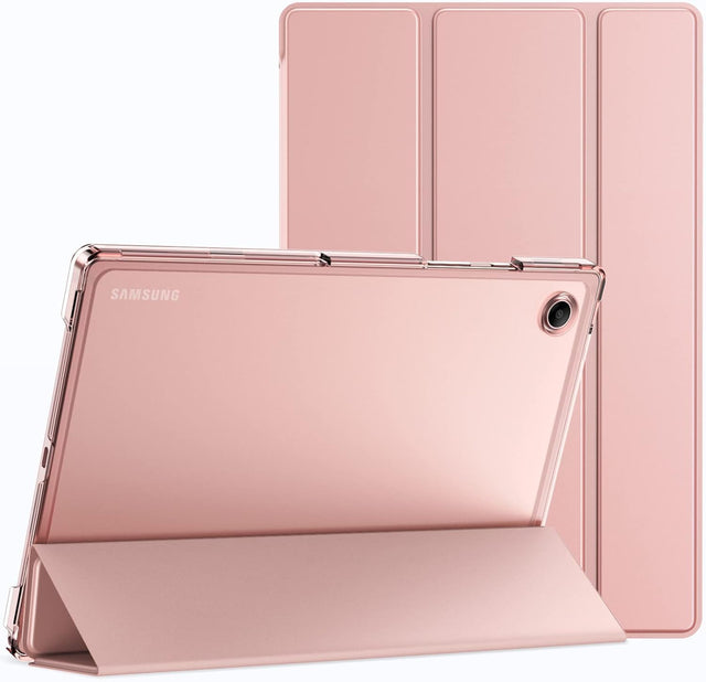 جراب AWH لجهاز سامسونج جالاكسي تاب A8-10.5 بوصة 2022 (SM-X200/X205/X207) - غطاء واقٍ رفيع شفاف قابل للطي بثلاث طيات، مع خاصية الإيقاظ/السكون التلقائي (ذهبي وردي)