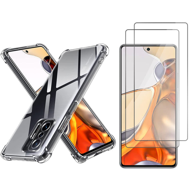 متوافق مع هاتف Xiaomi 11T / 11T Pro، جراب سيليكون شفاف و[عبوة من 2] واقي شاشة شفاف عالي الدقة، خالٍ من الفقاعات، مضاد للخدش، رفيع للغاية، لهاتف Xiaomi Mi 11T / Xiaomi Mi 11T Pro.