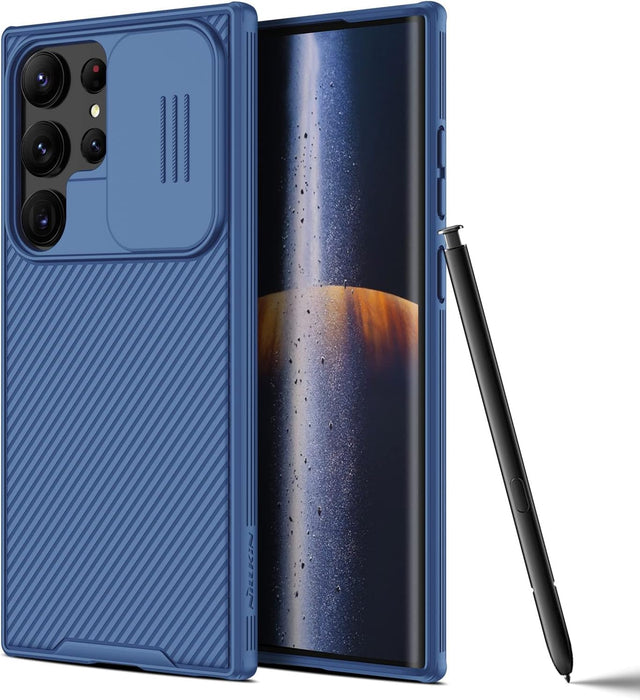 جراب AWH Galaxy S23 Ultra - جراب CamShield Pro لهاتف Samsung Galaxy S23 Ultra مع غطاء كاميرا منزلق، جراب هاتف نحيف ومتين لهاتف Samsung S23 Ultra 5G 2023 مقاس 6.8 بوصة - أزرق