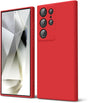 جراب AWH لهاتف Galaxy S24 Ultra من السيليكون السائل - جل مطاطي ناعم فاخر، تصميم أنيق رفيع، لمسة نهائية ناعمة غير لامعة من مادة TPU مع غطاء لعدسة الكاميرا - غطاء هاتف واقٍ وأنيق (أحمر)
