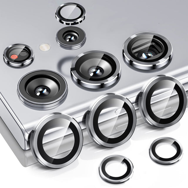 واقي عدسة كاميرا AWH Hoerrye لهاتف Samsung Galaxy S23 Ultra، مناسب للحافظات، مصنوع من زجاج مقوى 9H مضاد للخدش، دائرة حماية عسكرية من التيتانيوم الفضائي، أداة إزالة (فضي) تم طلبه مرة أخرى وسيتم شحنه بمجرد توافره مرة أخرى في المخزون.