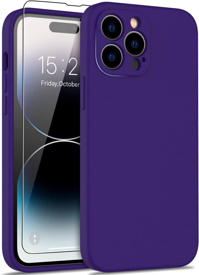 جراب AWH لهاتف iPhone 14 Pro Max مع واقي شاشة - غطاء كاميرا معزز، مصنوع من مطاط جل السيليكون الناعم المقاوم للسقوط من ارتفاع 16 قدمًا، جراب هاتف واقٍ رفيع لهاتف iPhone 14 Pro Max مقاس 6.7 بوصة - أرجواني داكن