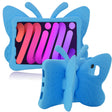 جراب AWH JGY iPad Mini 6 8.3 بتصميم فراشة جميل للأطفال والبنات، مصنوع من إسفنج EVA خفيف الوزن وغطاء كامل متين لجهاز iPad Mini 6 للأطفال مع حامل قلم رصاص، جراب مقاوم للصدمات ومتين لجهاز iPad Mini 6 (أزرق)