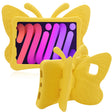 جراب AWH JGY iPad Mini 6 8.3 بتصميم فراشة جميل للأطفال والبنات، مصنوع من إسفنج EVA خفيف الوزن وغطاء كامل متين لجهاز iPad Mini 6 للأطفال مع حامل قلم رصاص، جراب مقاوم للصدمات ومتين لجهاز iPad Mini 6 (أصفر)
