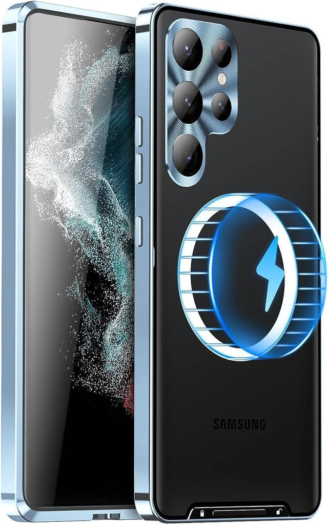 جراب معدني AWH لهاتف Samsung S23 Plus 5G - متوافق مع شاحن Ma-g-Safe اللاسلكي - ظهر شفاف غير لامع مع حماية عدسة الكاميرا، غطاء مغناطيسي لهاتف Galaxy S23 Plus (أزرق) تم طلبه مرة أخرى وسيتم شحنه بمجرد توافره مرة أخرى في المخزون.