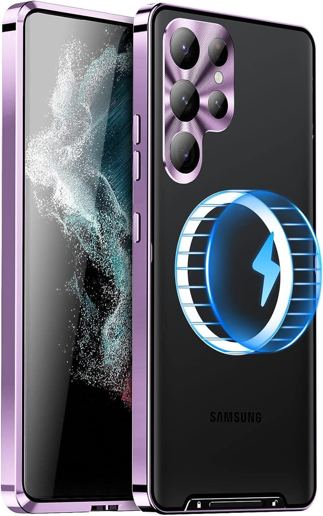 جراب معدني AWH لهاتف Samsung S23 Plus 5G - متوافق مع شاحن Ma-g-Safe اللاسلكي - ظهر شفاف غير لامع مع حماية عدسة الكاميرا، غطاء مغناطيسي لهاتف Galaxy S23 Plus (أرجواني) تم طلبه مرة أخرى وسيتم شحنه بمجرد توافره مرة أخرى في المخزون.