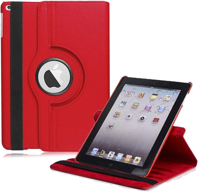 جراب جلدي لجهاز iPad Air 2 الجديد من AWH مقاس 9.7 بوصة - غطاء ذكي بحامل دوار 360 درجة مع خاصية السكون والاستيقاظ التلقائي لجهاز Apple iPad Air أو جهاز iPad اللوحي الجديد مقاس 9.7 بوصة 2017 - أحمر