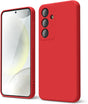 جراب AWH S24 Plus من السيليكون السائل - غطاء واقٍ من هلام المطاط الناعم الفاخر - تصميم أنيق رفيع من مادة TPU غير اللامعة - مع غطاء عدسة الكاميرا - مصمم للنساء والرجال (أحمر)